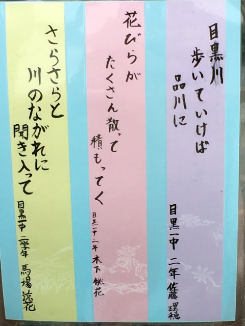 そして桜だけではなく川沿いには近所の小・中学生の短冊が展示されているので、そちらにも目を向けていただきたいです。